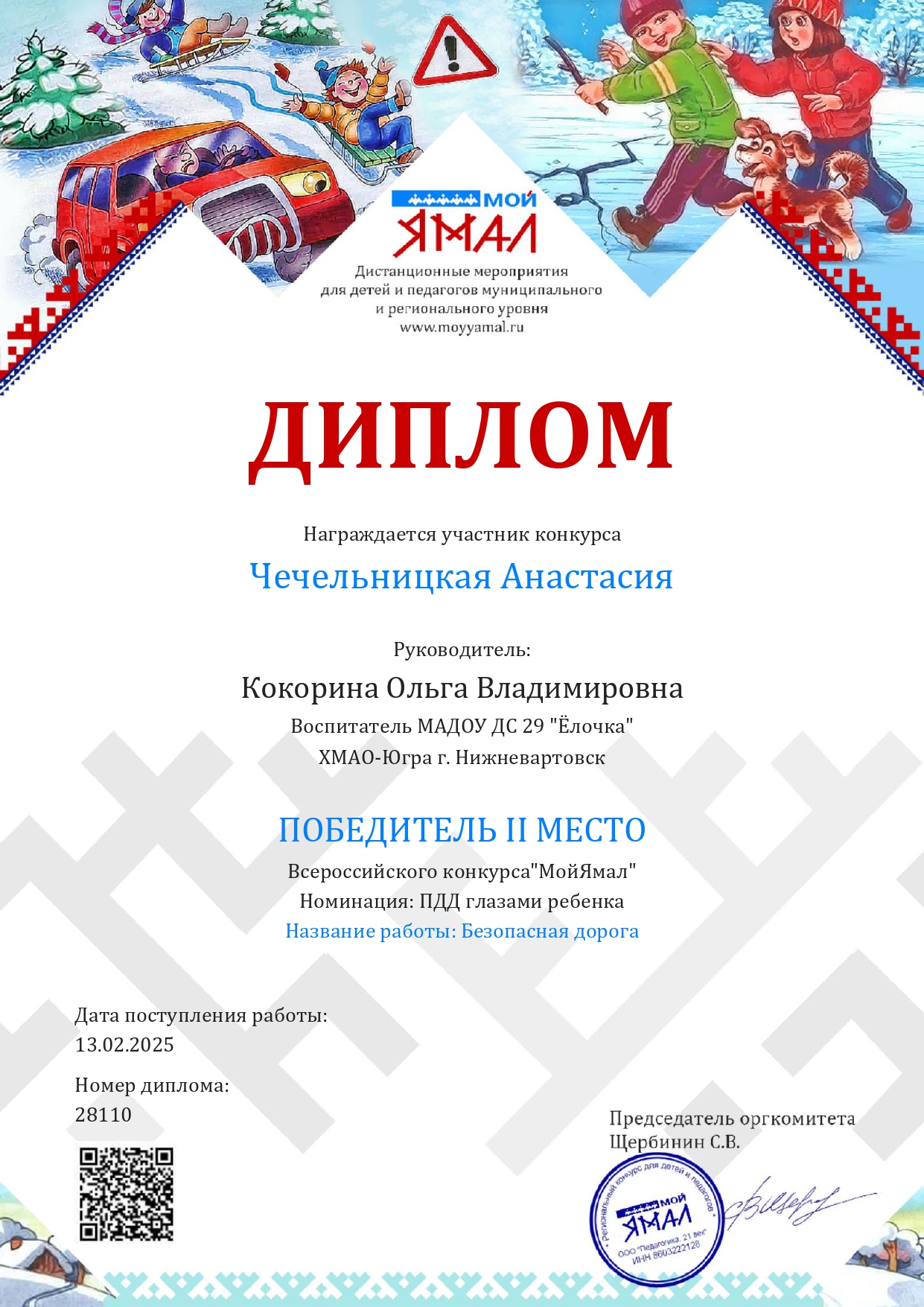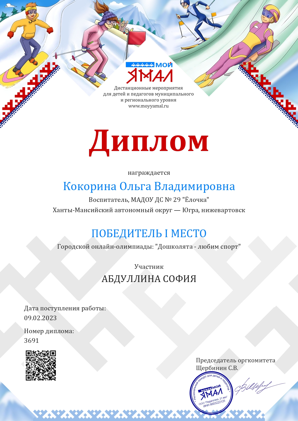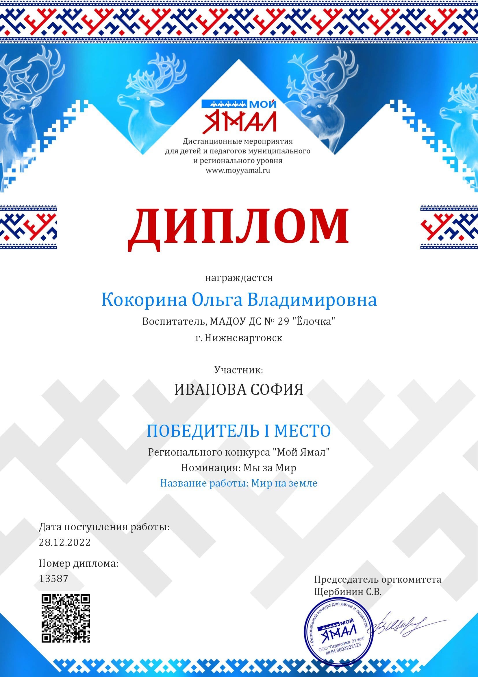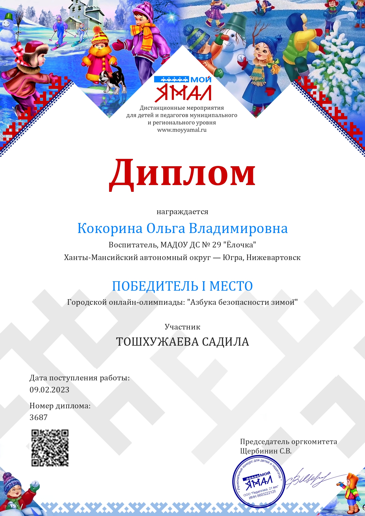 Диплом 1 место в Региональном конкурсе " Мой Ямал"