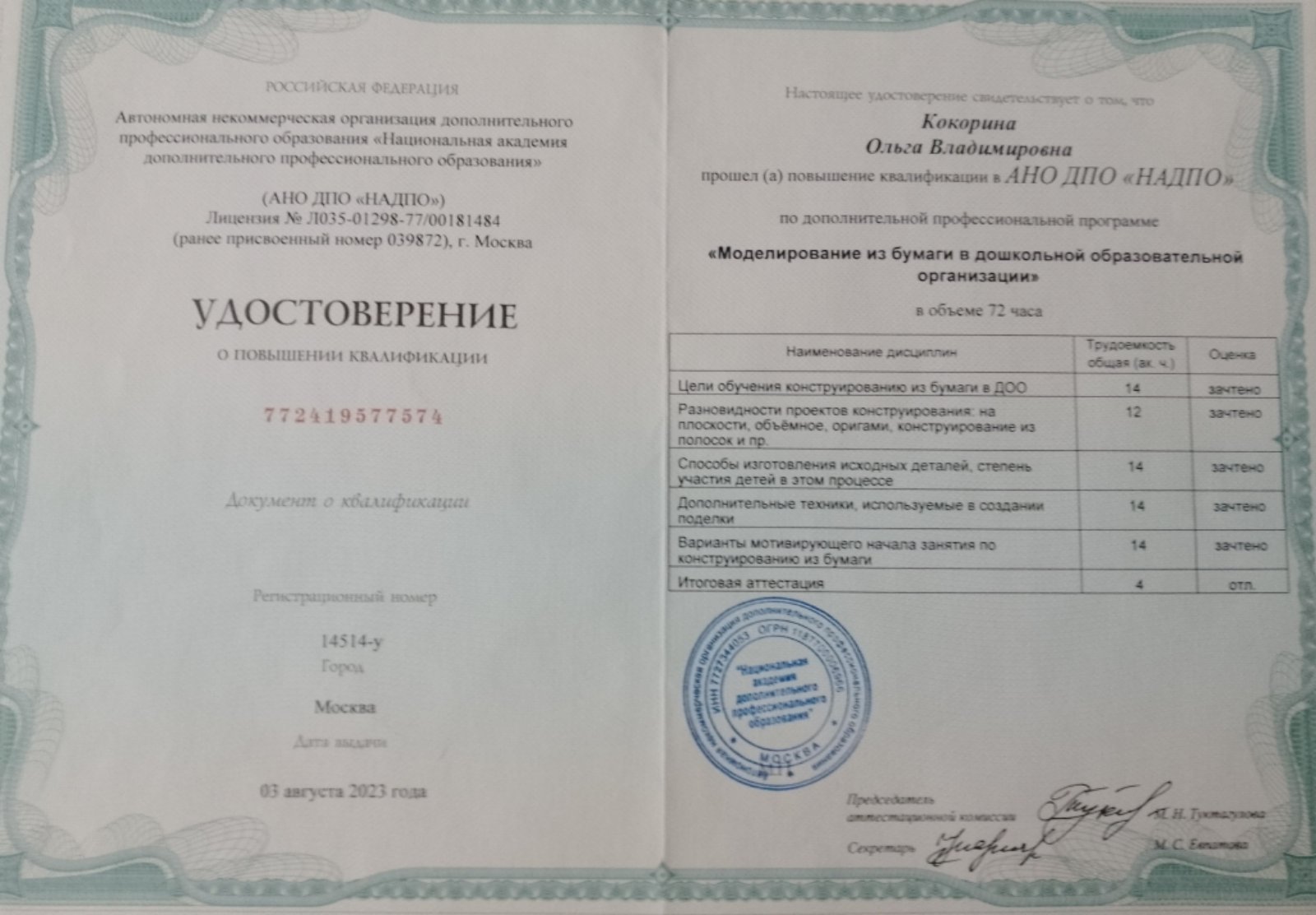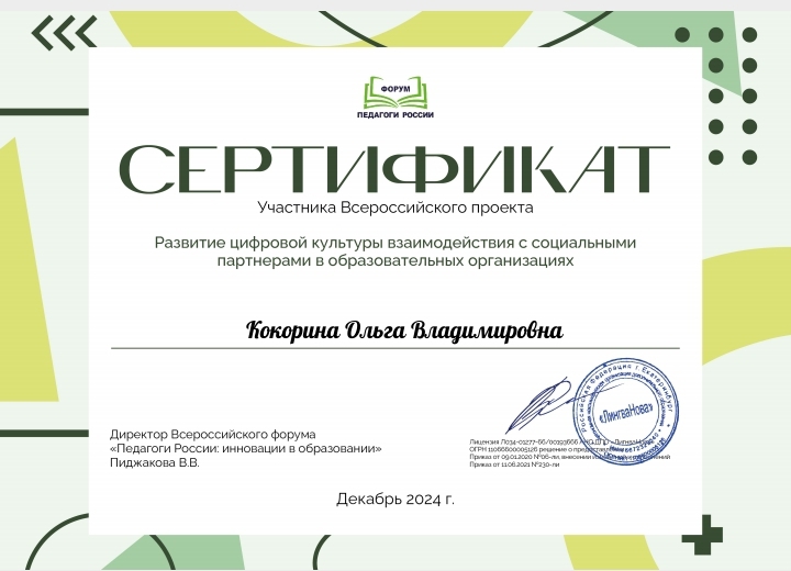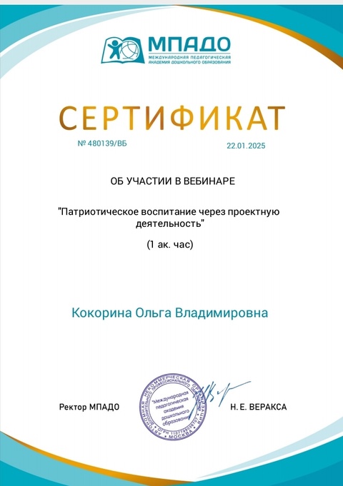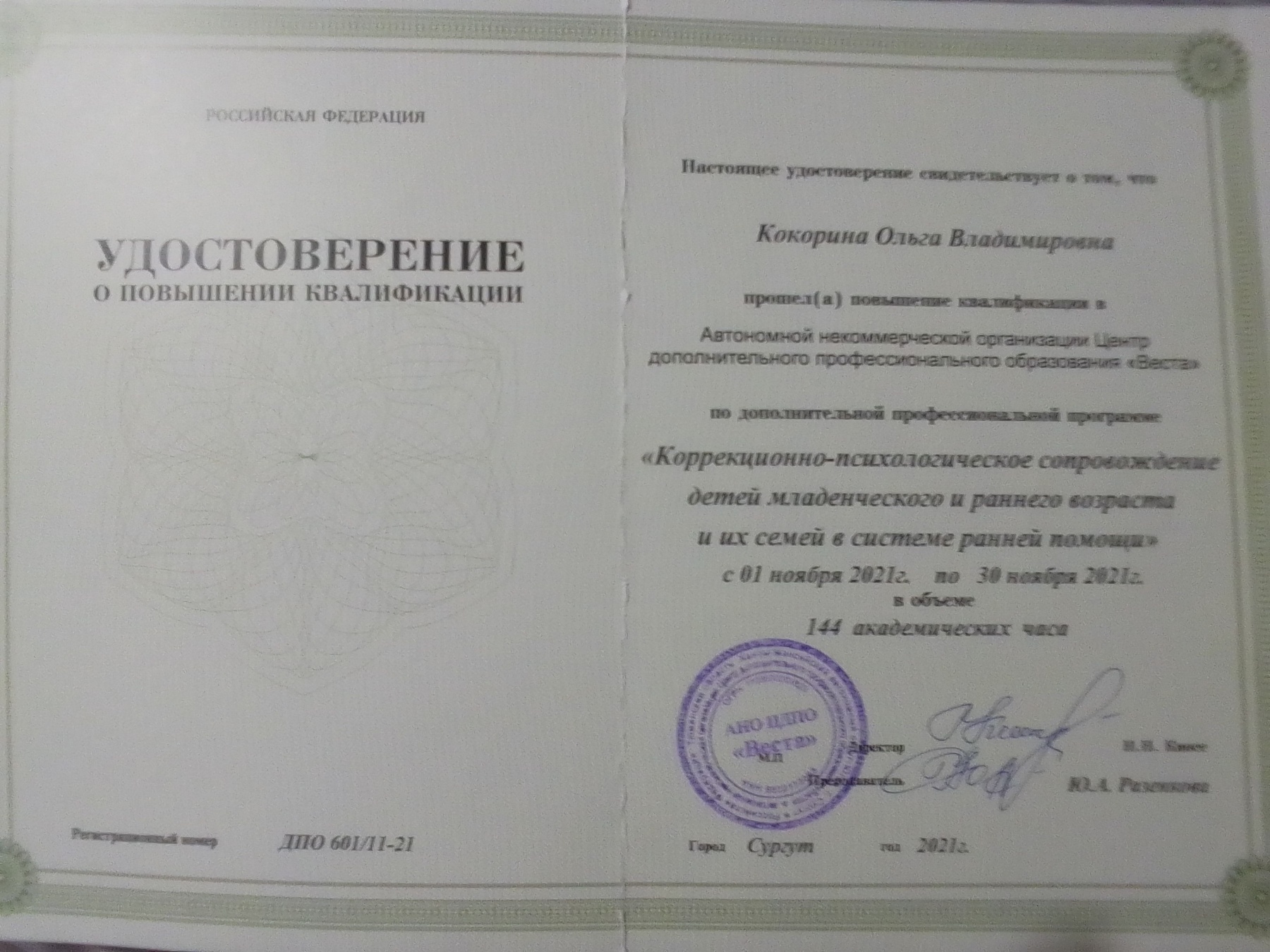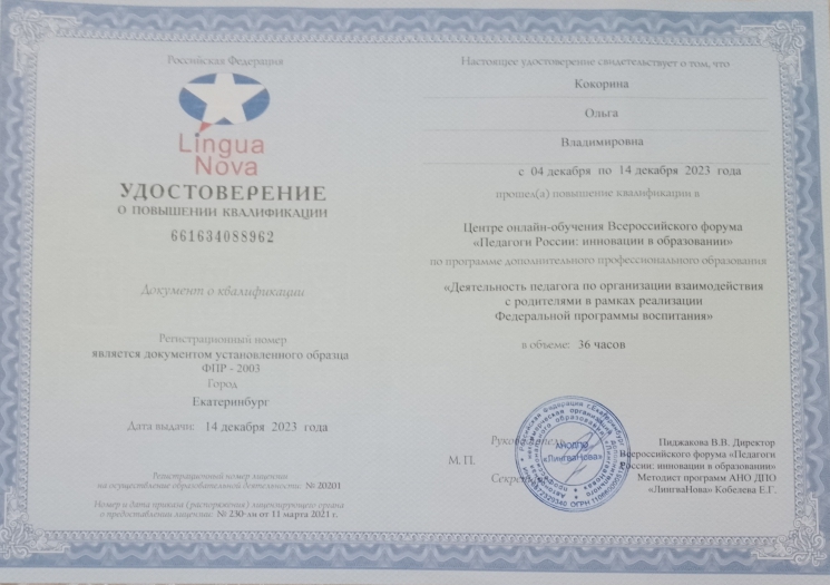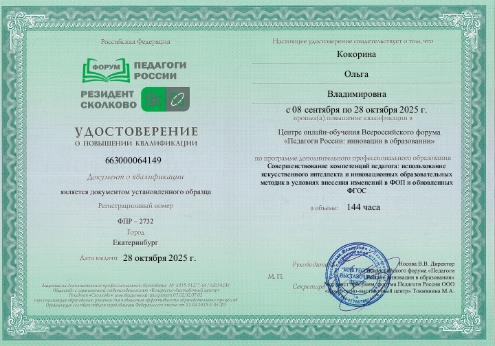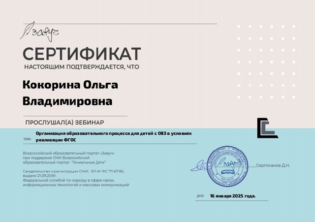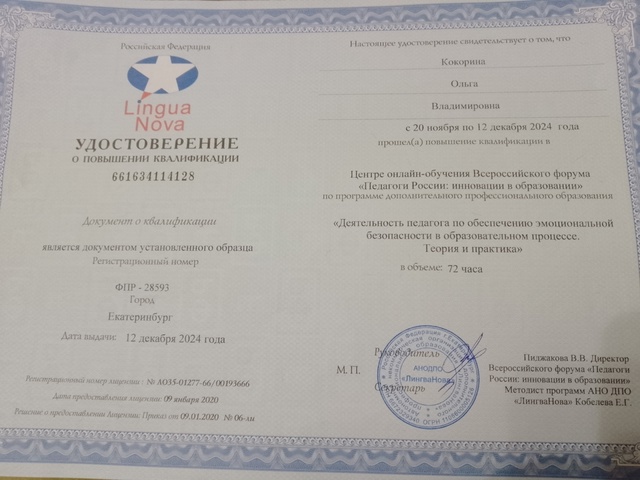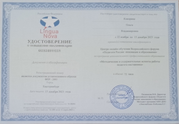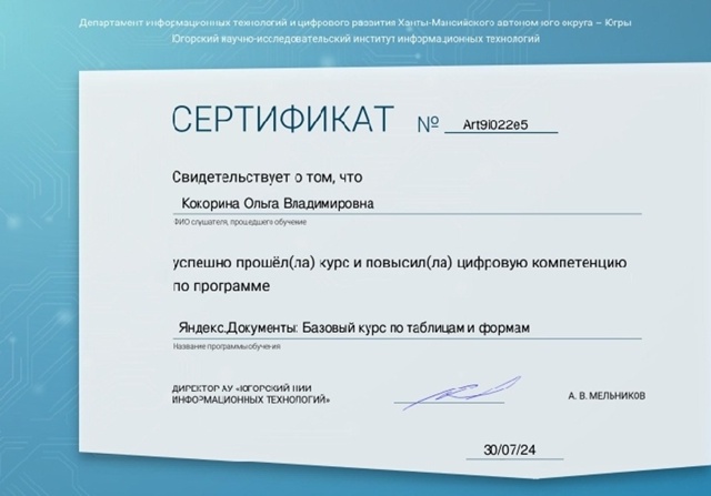 Сертификат о повышении квалификации