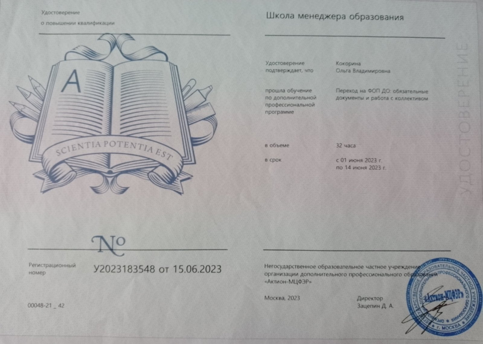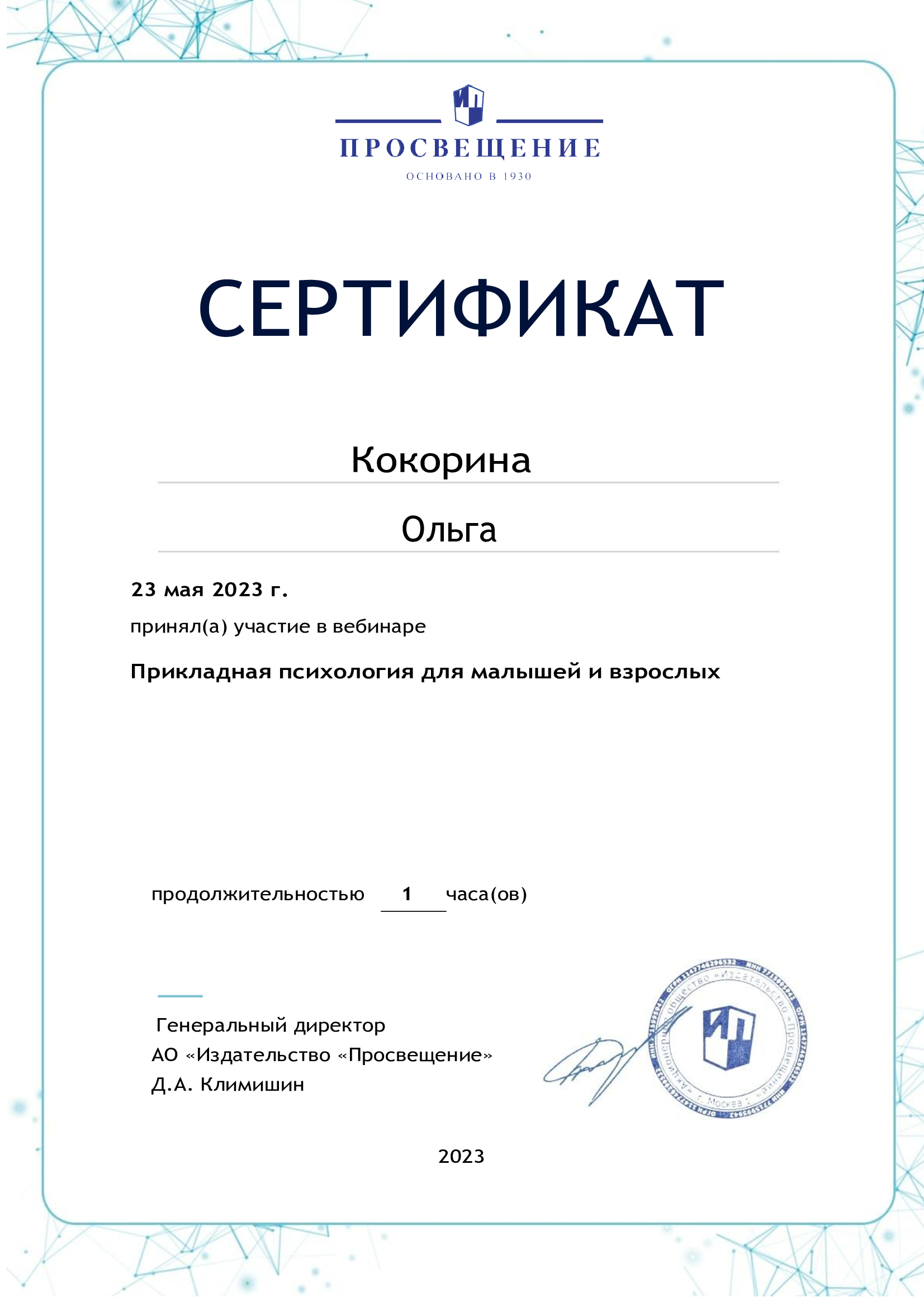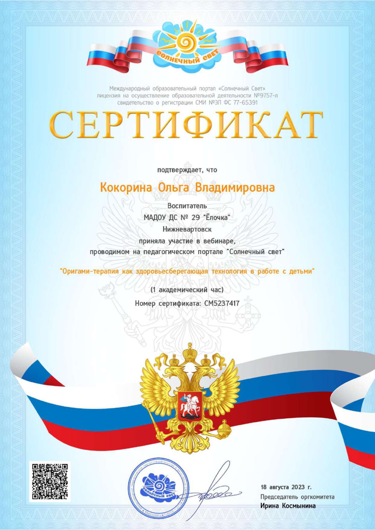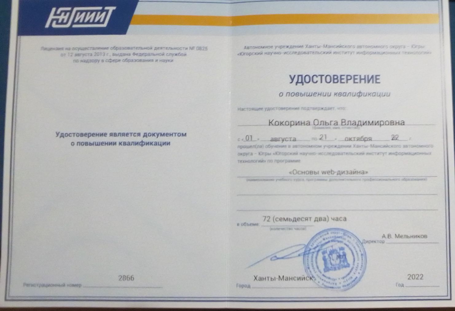 Сертификат о повышении квалификации