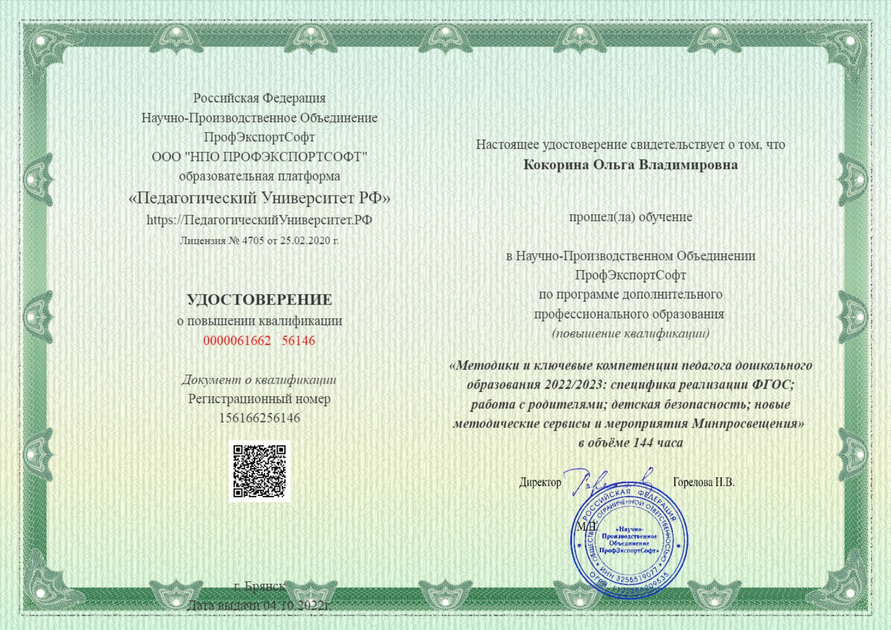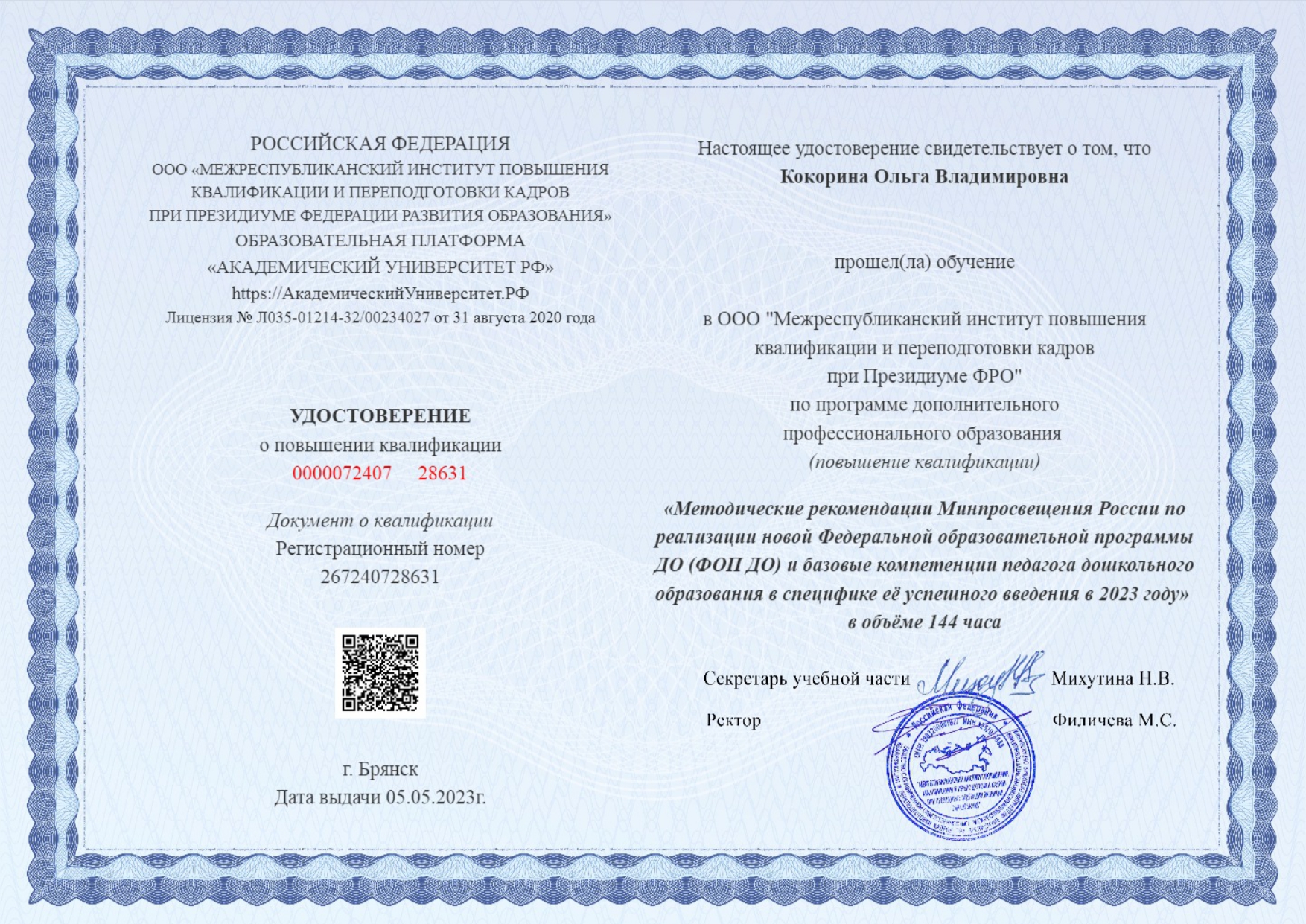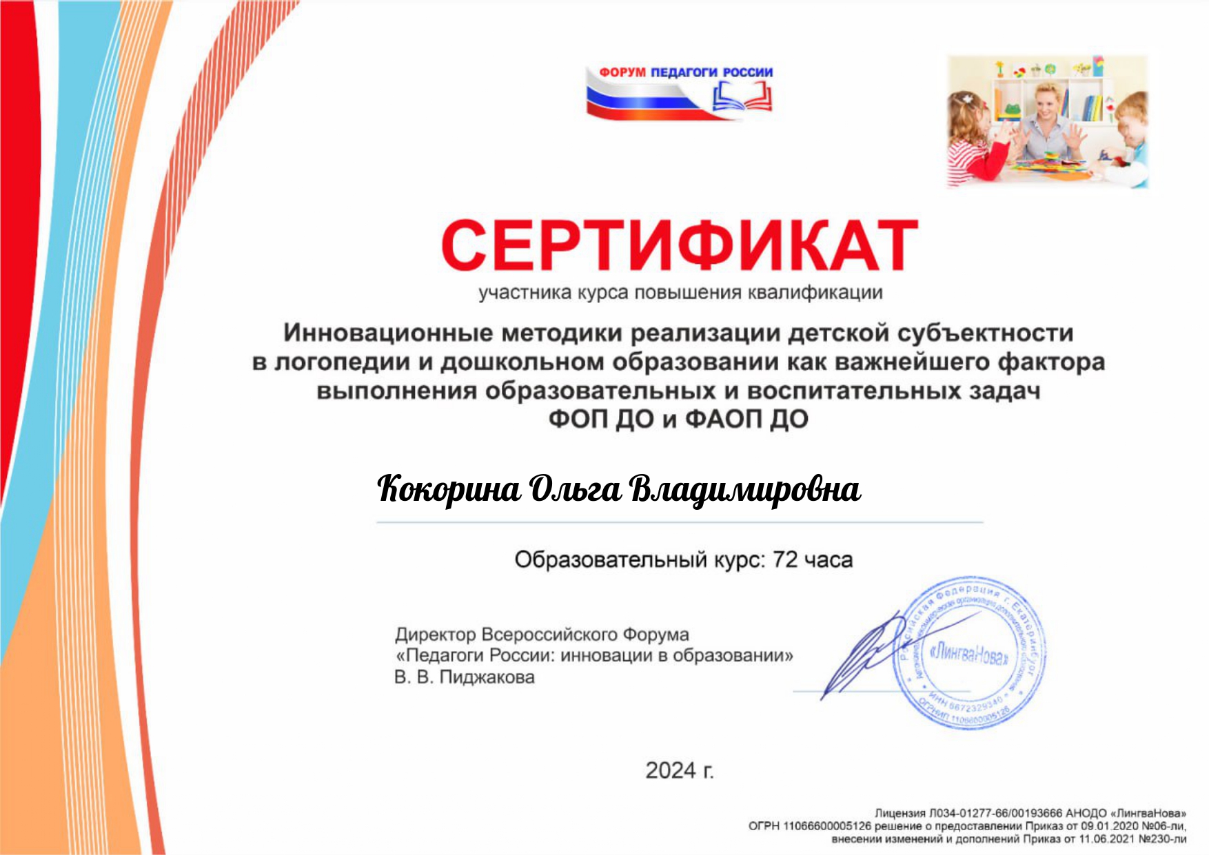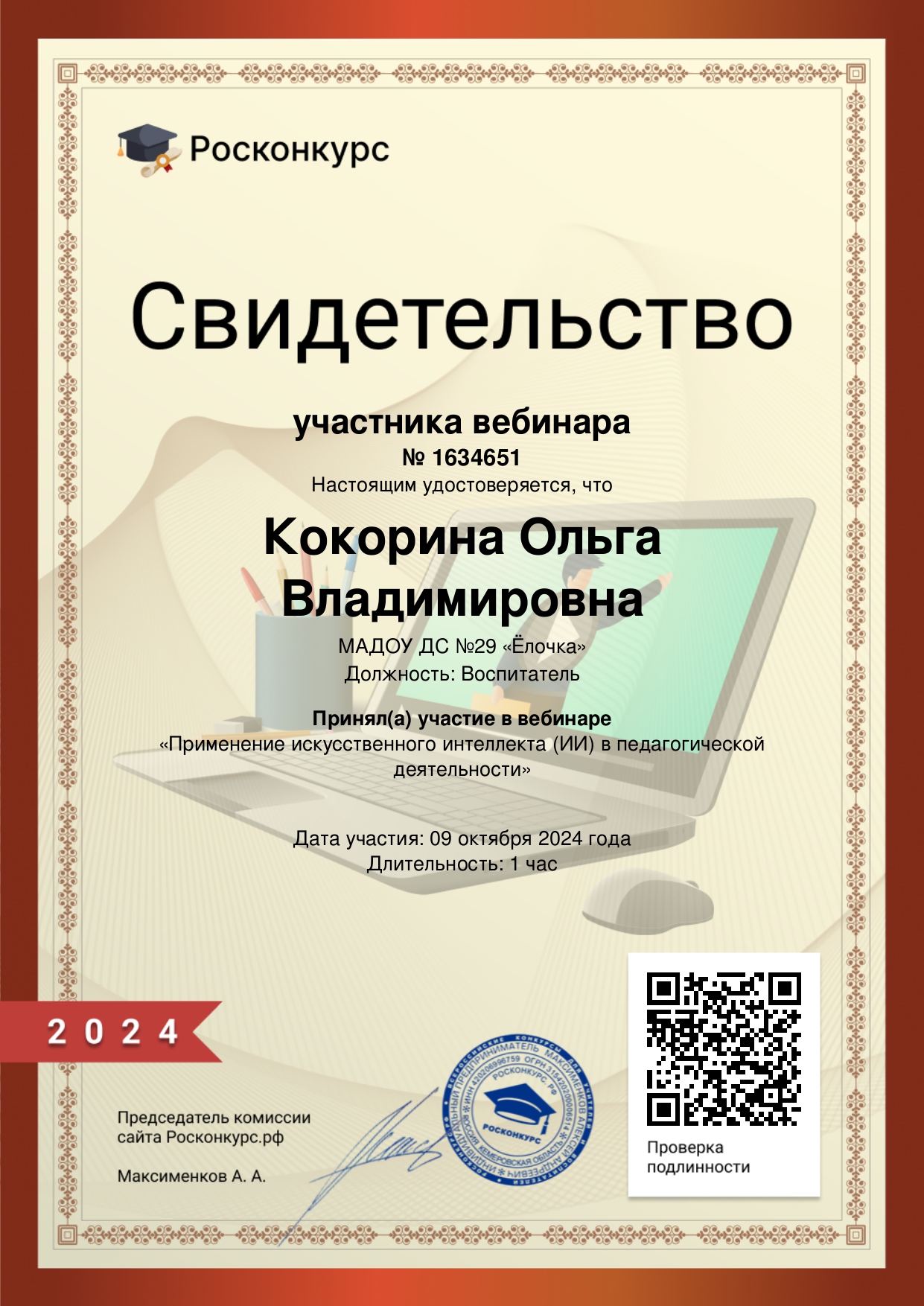 Сертификат о повышении квалификации
