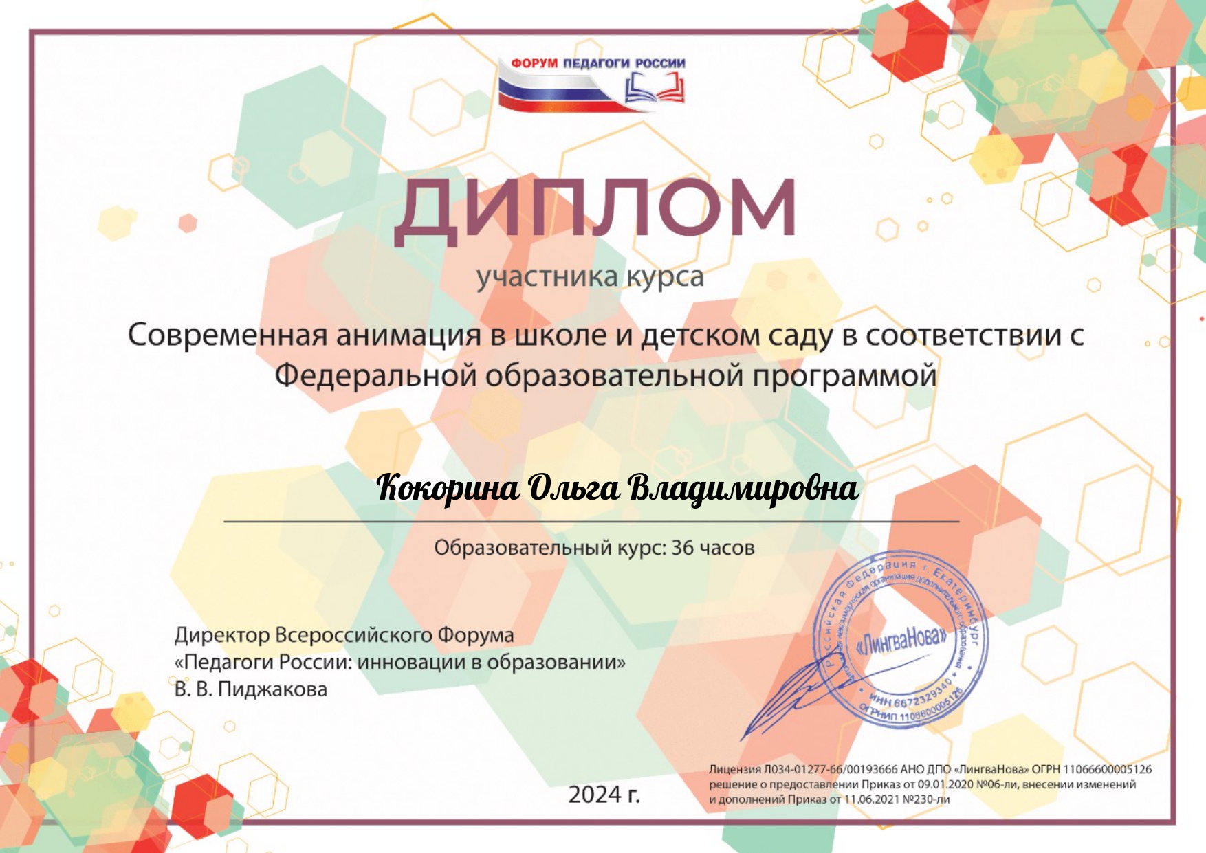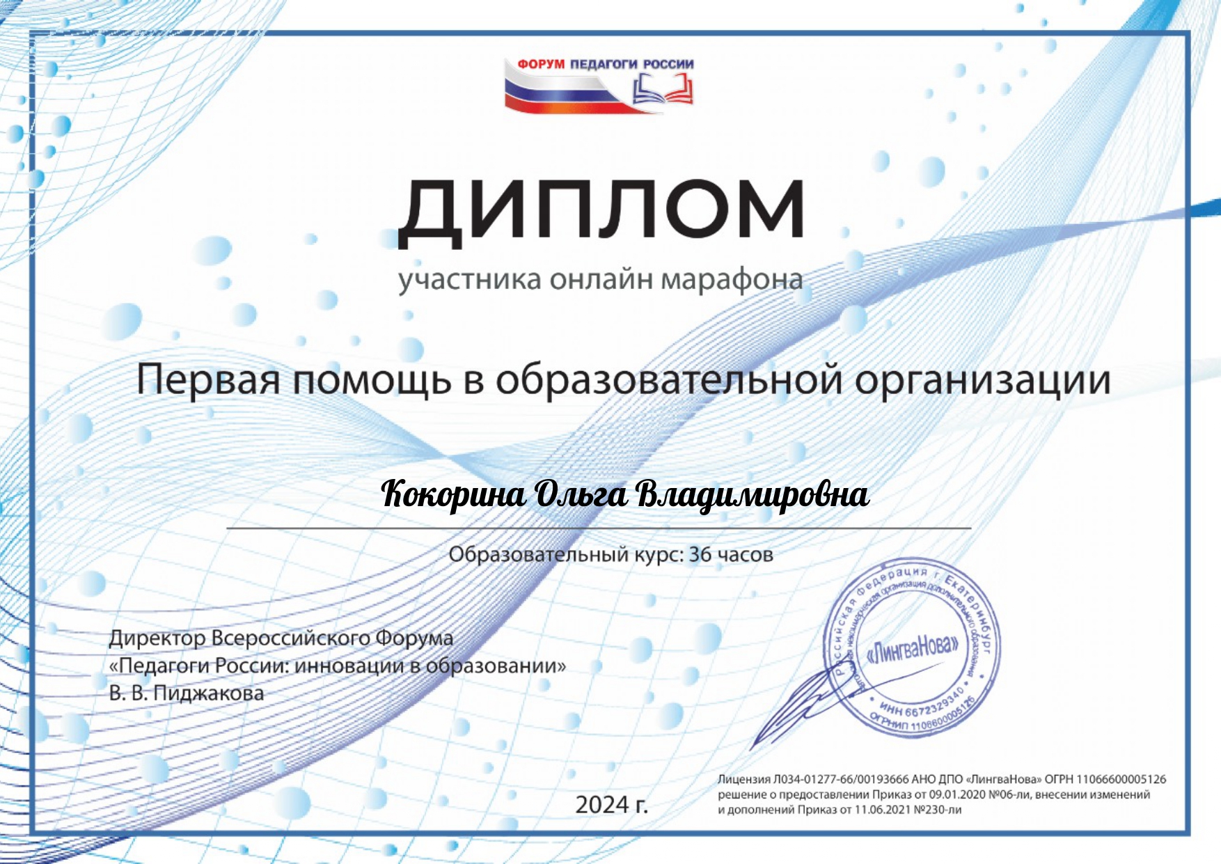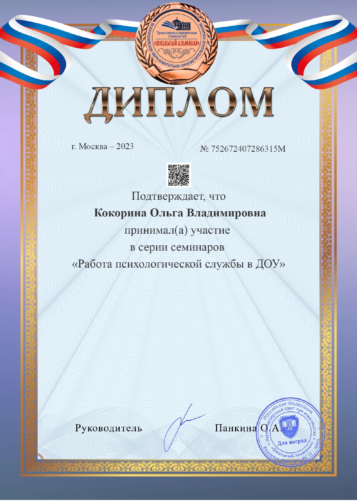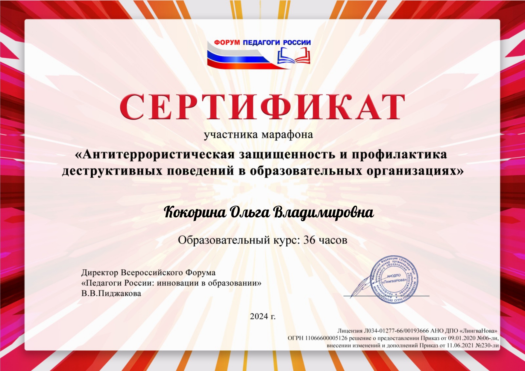 Сертификат о повышении квалификации