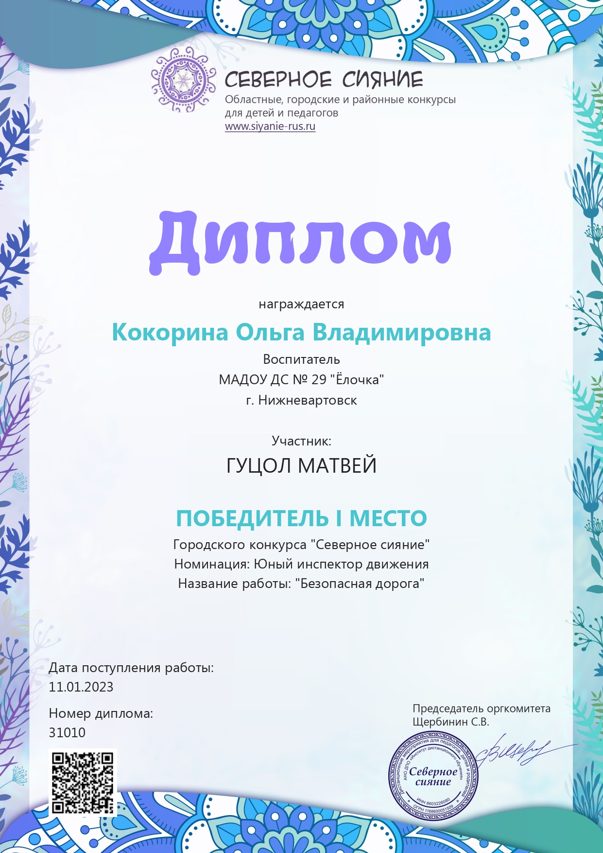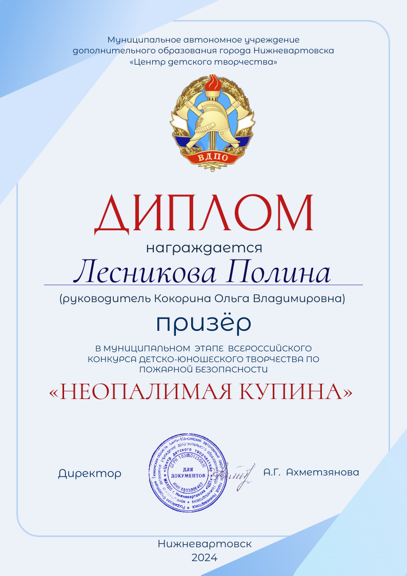 I место во всероссийском конкурсе "Северное сияние"