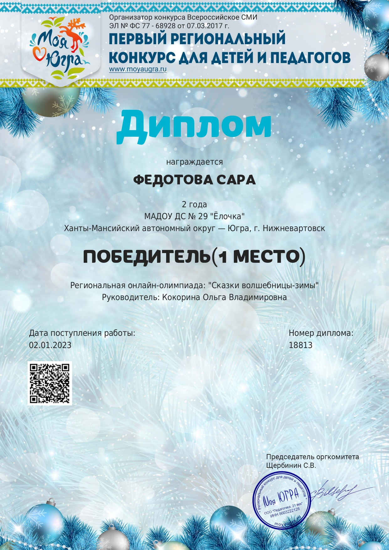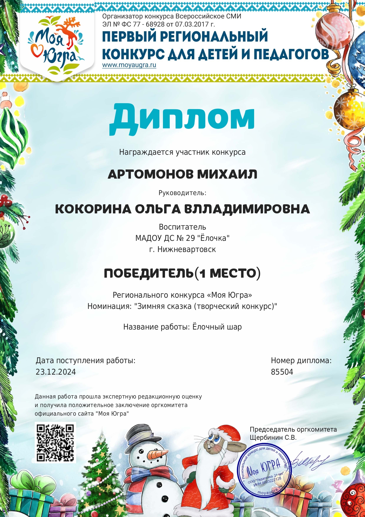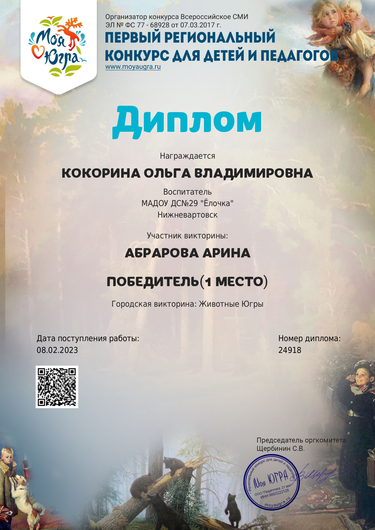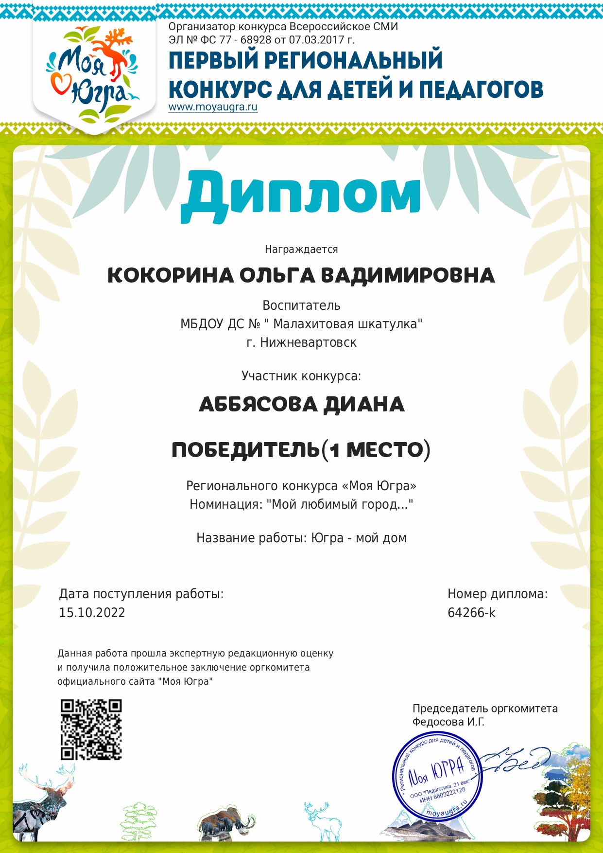 I место окружного конкурса «Моя Югра»