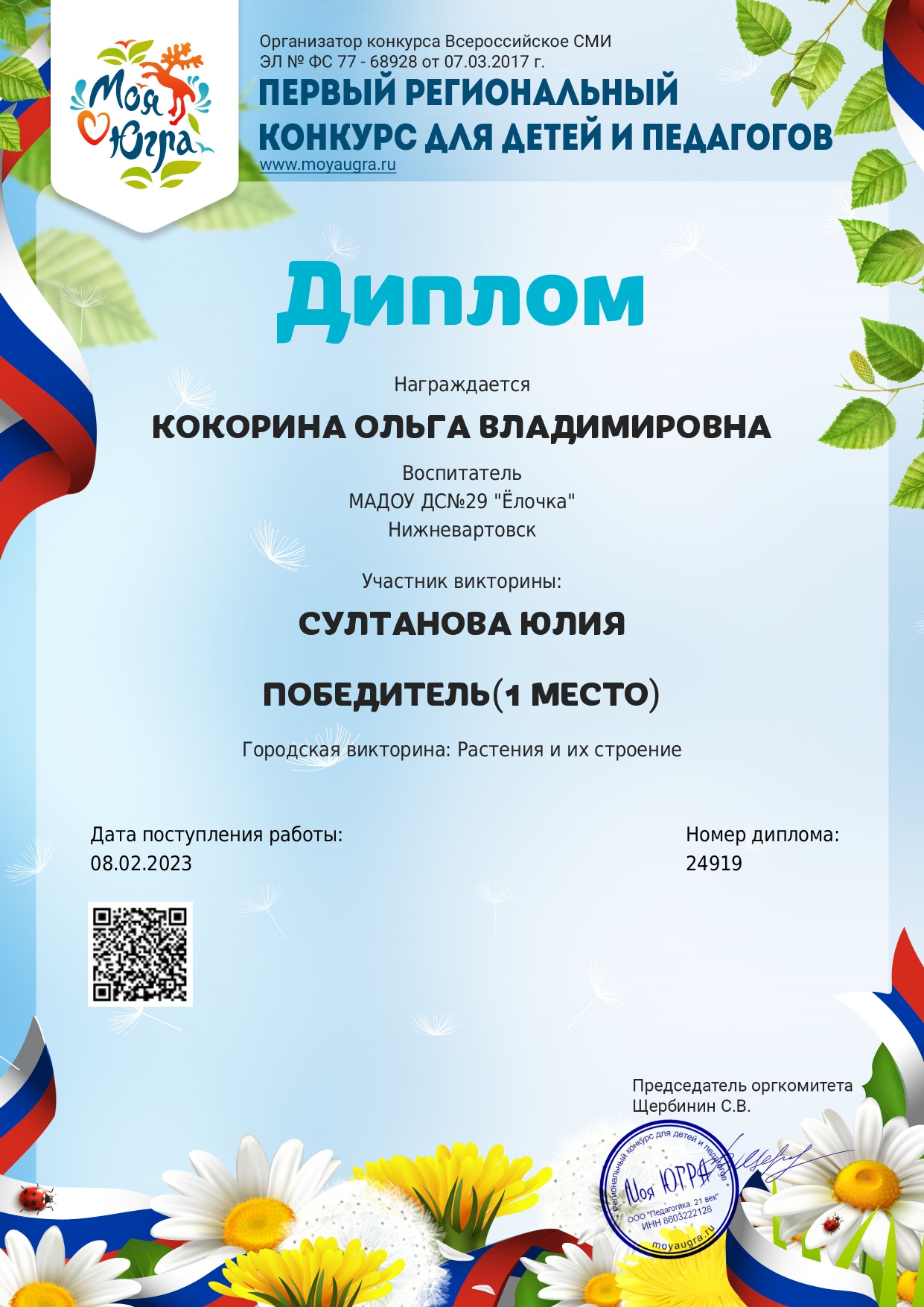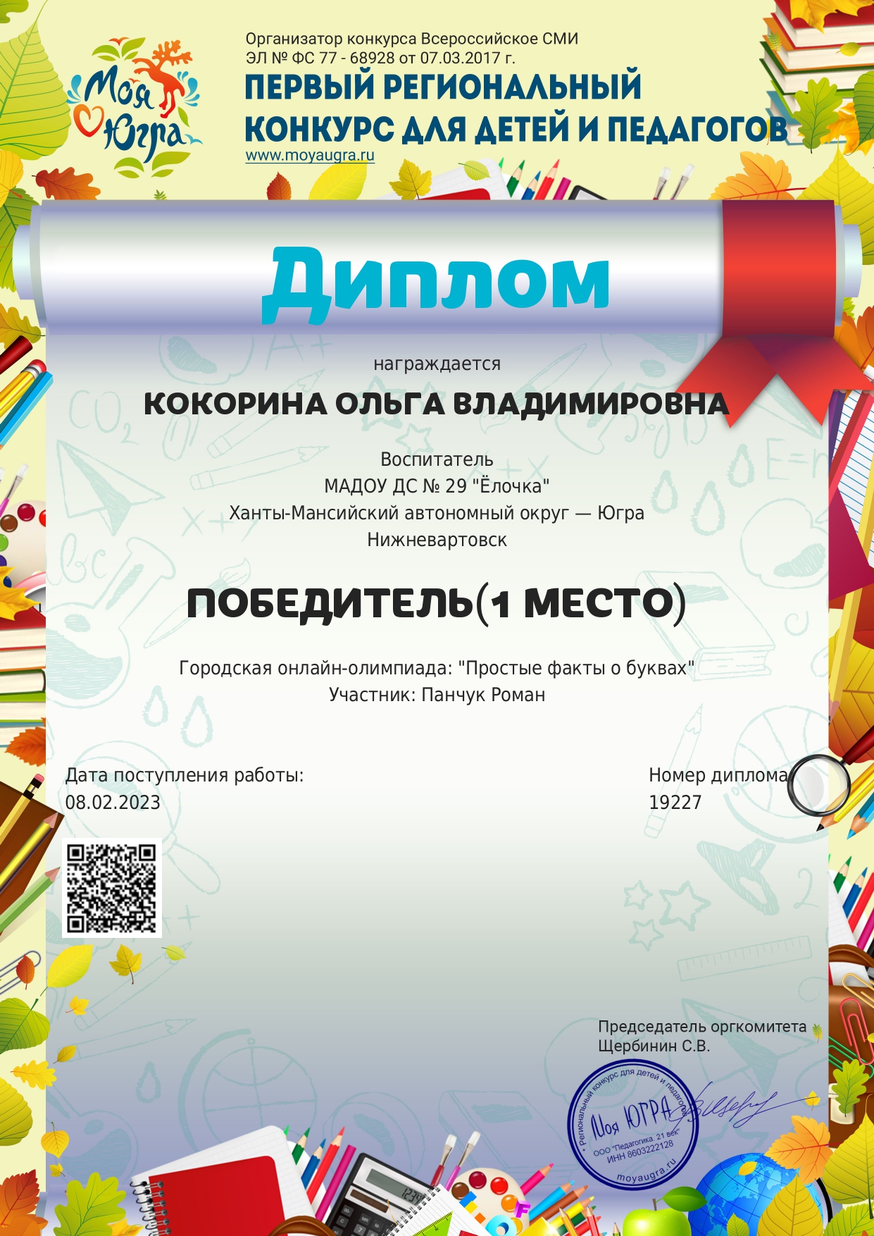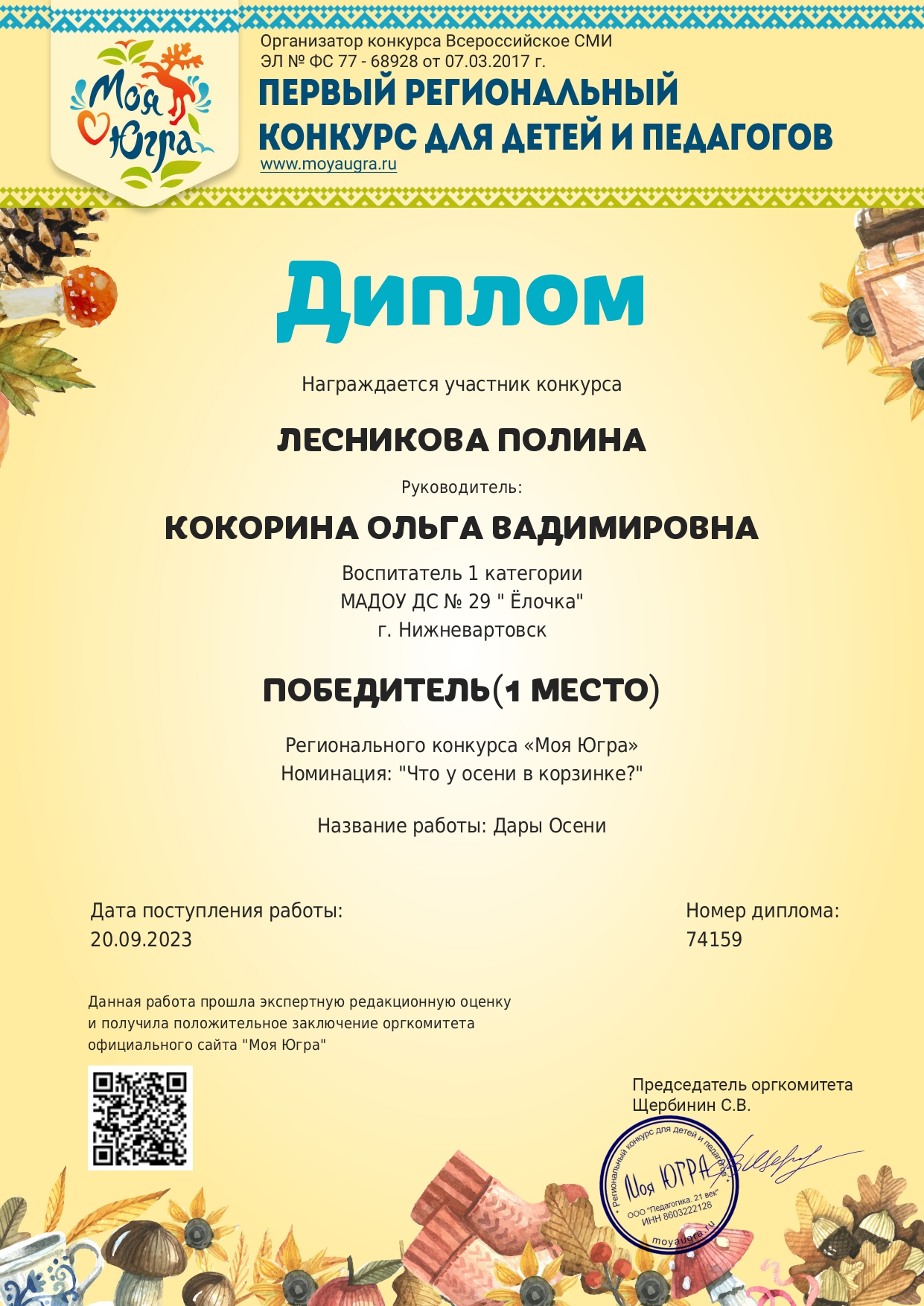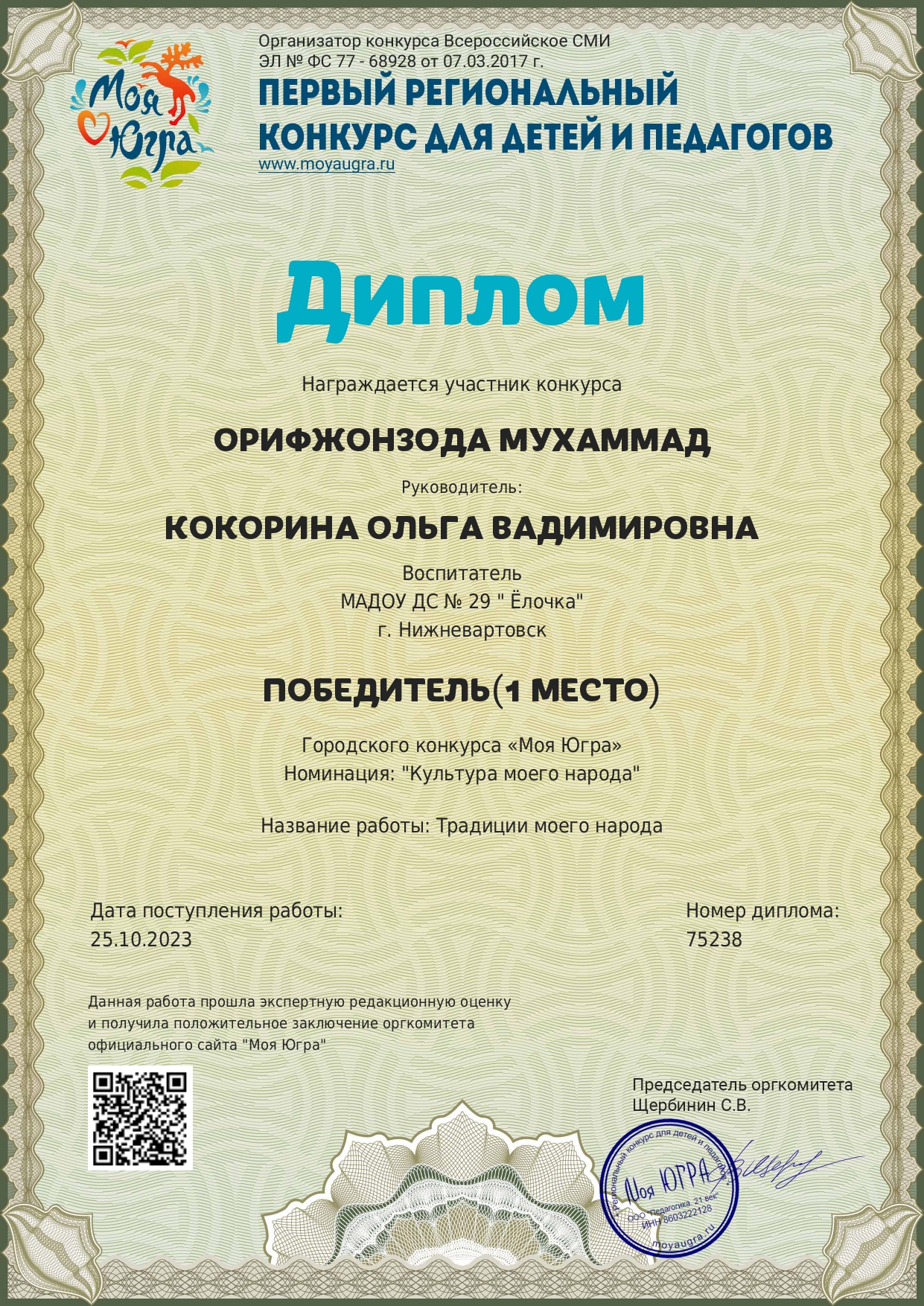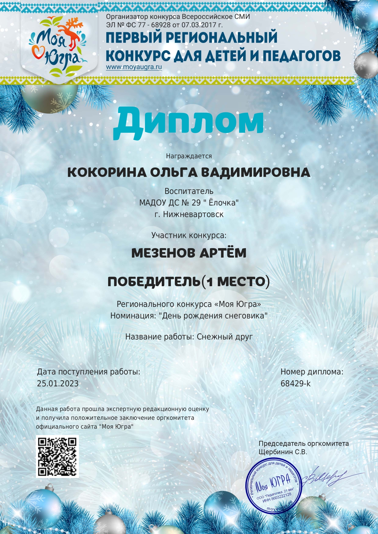 I место окружного конкурса «Моя Югра»