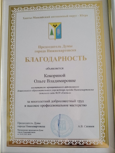 Благодарственное письмо за активное участие в конкурсах, олимпиадах "Моя Югра"