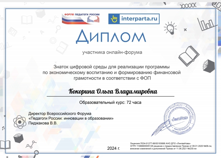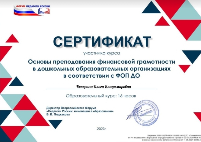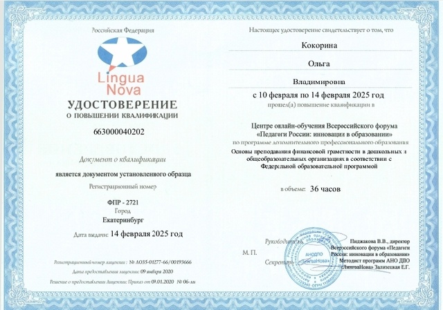 "Основы преподования финансовой грамотности в дошкольных и общеобразовательных организациях в соответствии с Федеральной образовательной программой" 36 часов