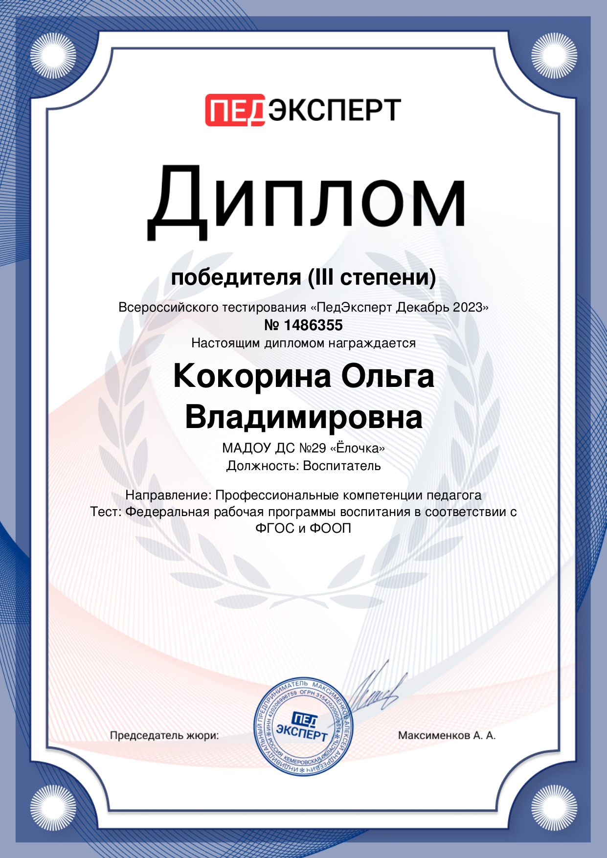 Лауреат 1 степени