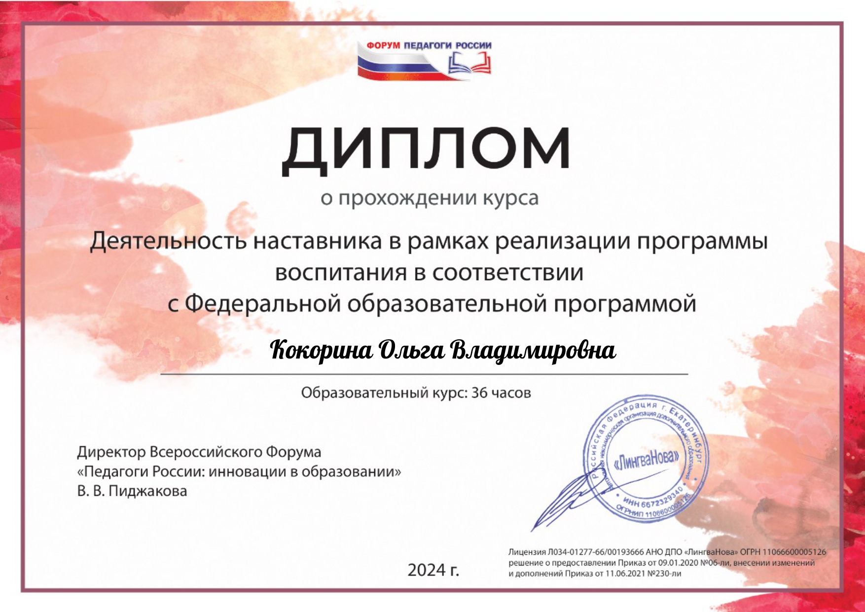по программе дополнительного профессионального образования